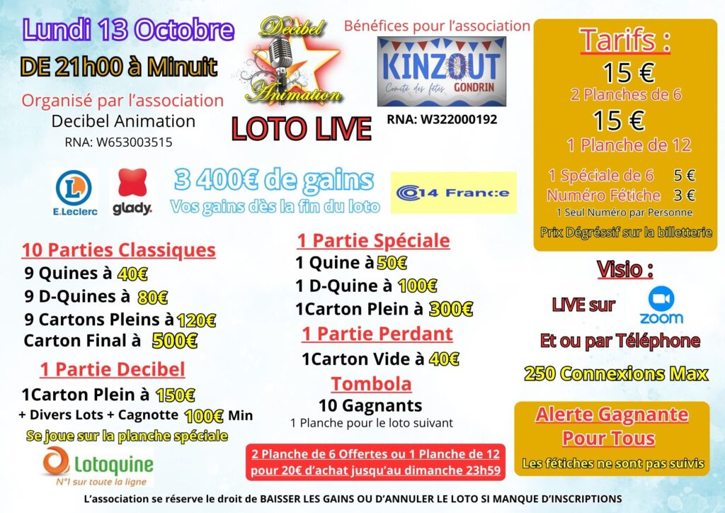 Loto au profit de l’association Kinzout (Comité des fêtes de Gondrin)