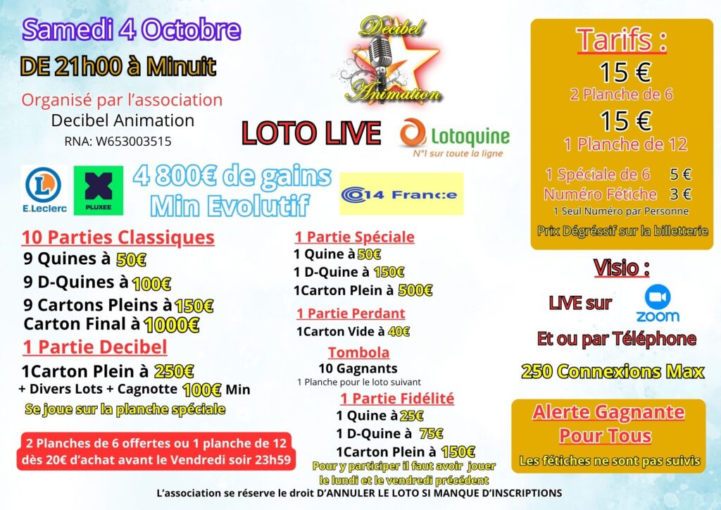 Loto au profit de l’association Decibel Animation