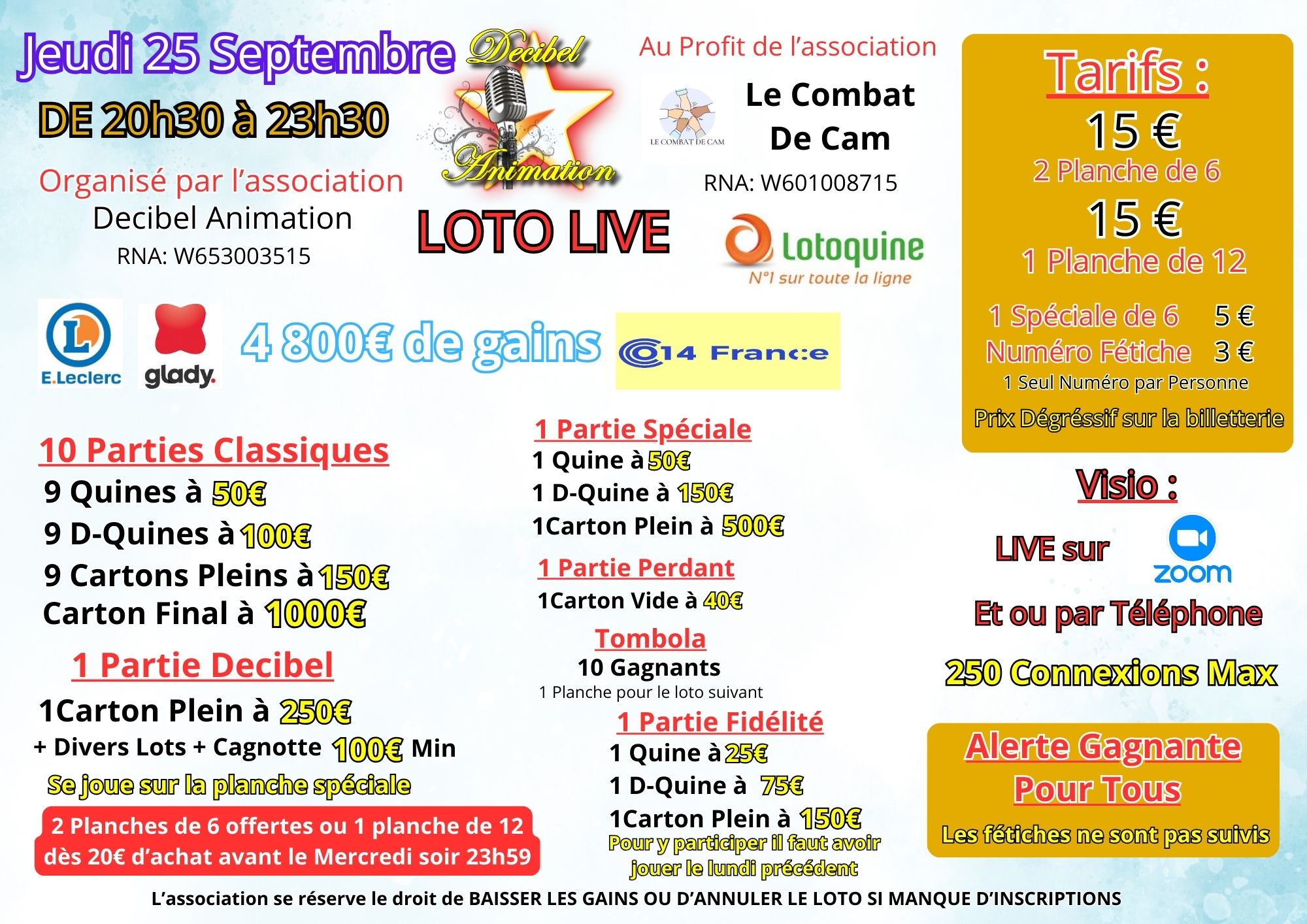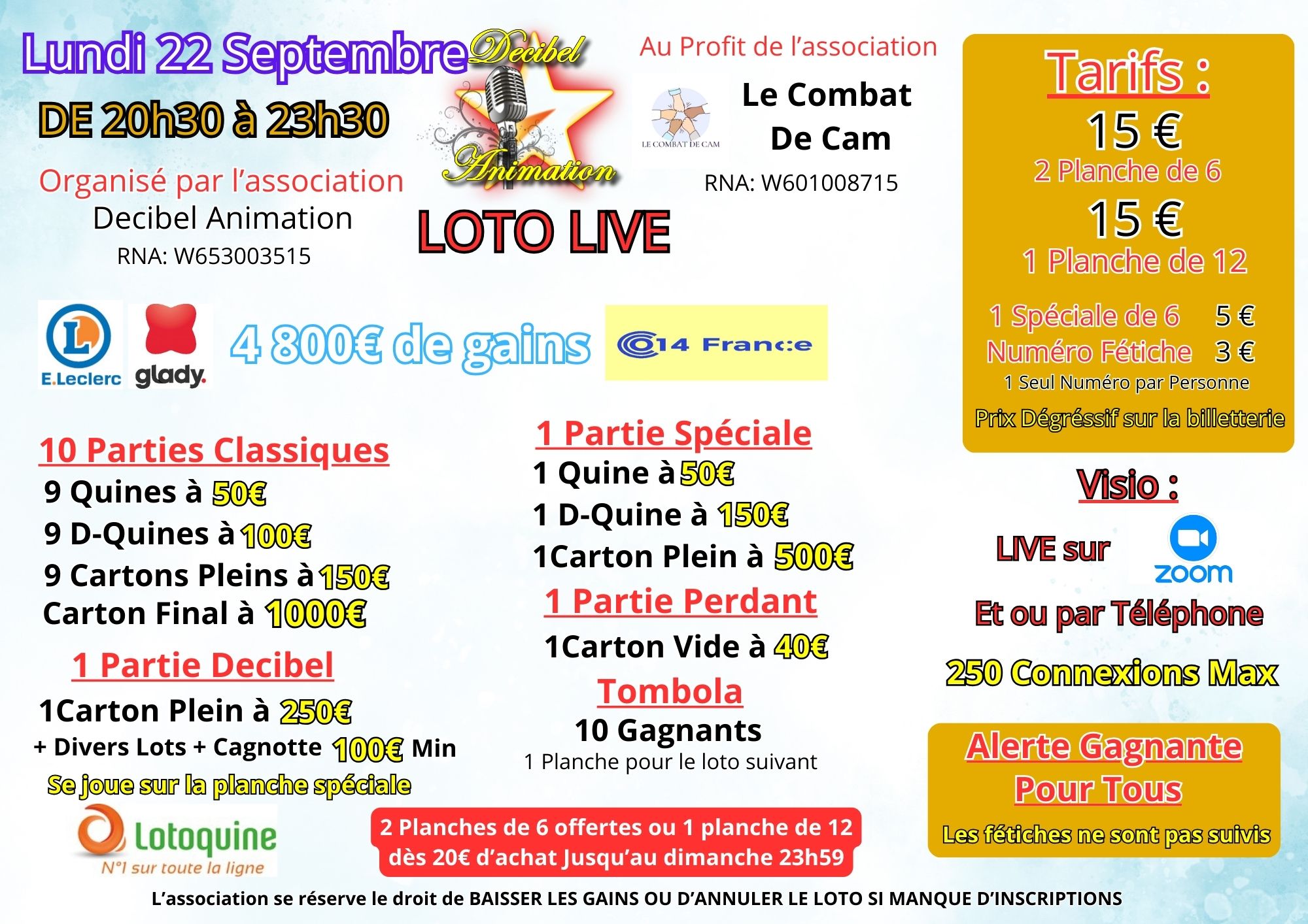 Loto au profit de l’association Le Combat de Cam RNA: :W601008715